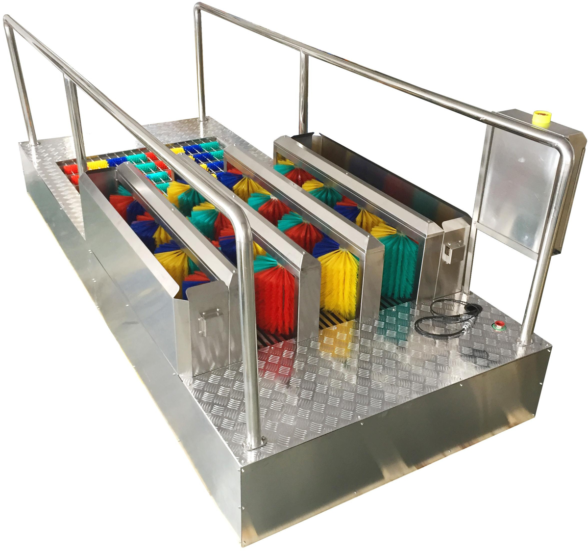 3、 使用人員行走在清洗臺(tái)上,利用刷子轉(zhuǎn)動(dòng)刷洗鞋底達(dá)到清潔效果。