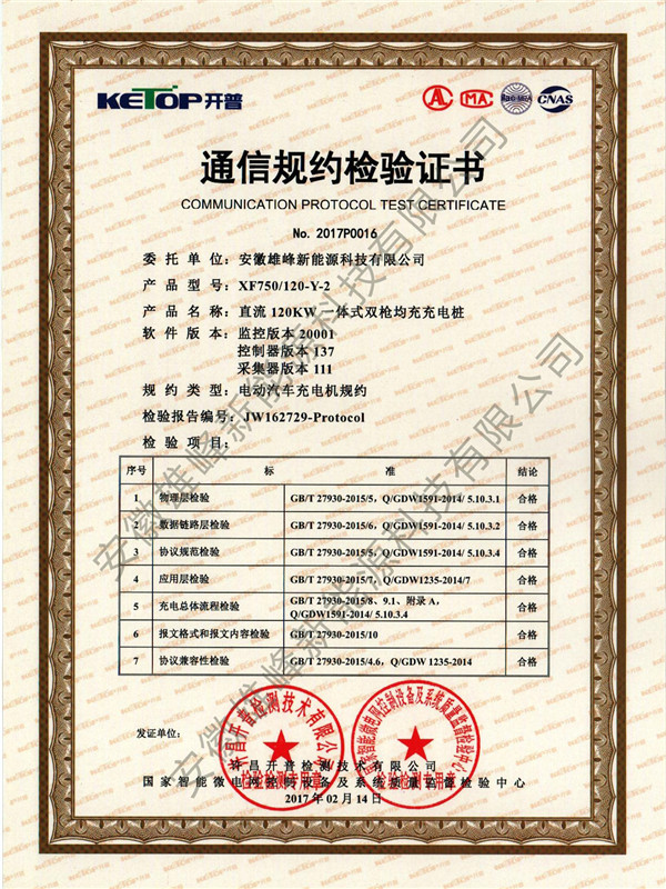 熱烈祝賀安徽雄峰新能源科技有限公司充電樁產(chǎn)品順利通過(guò)中電協(xié)繼電保護(hù)及自動(dòng)化設(shè)備分會(huì)技術(shù)標(biāo)準(zhǔn)中心、許昌開(kāi)普檢測(cè)技術(shù)有限公司及國(guó)家職能微電網(wǎng)控制設(shè)備及系統(tǒng)質(zhì)量監(jiān)督檢驗(yàn)中心檢測(cè),并獲得產(chǎn)品檢測(cè)證書(shū)及檢驗(yàn)報(bào)告!